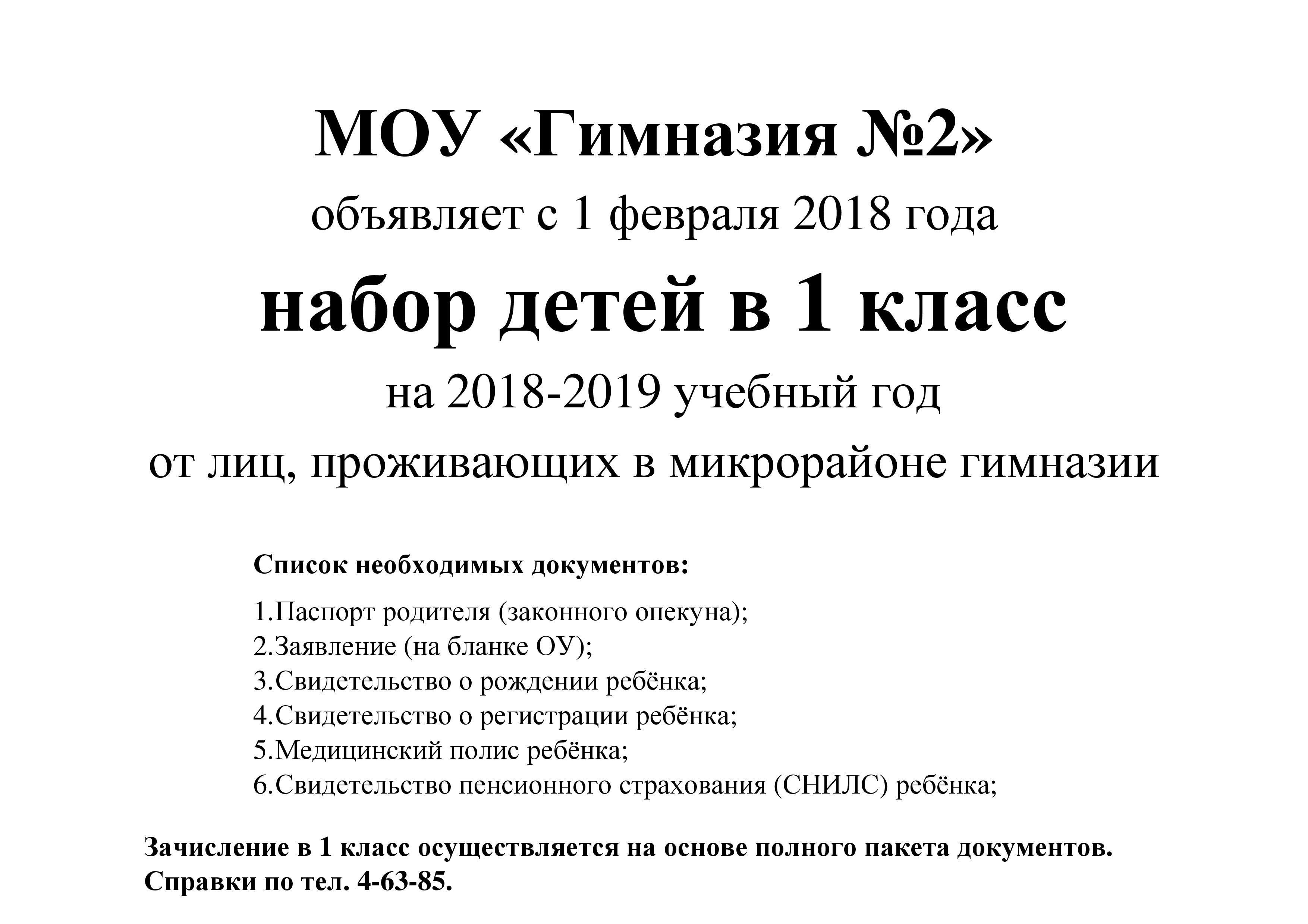 Лица, не проживающие в границах территории гимназии, могут подать заявления с 25 апреля 2018 года.