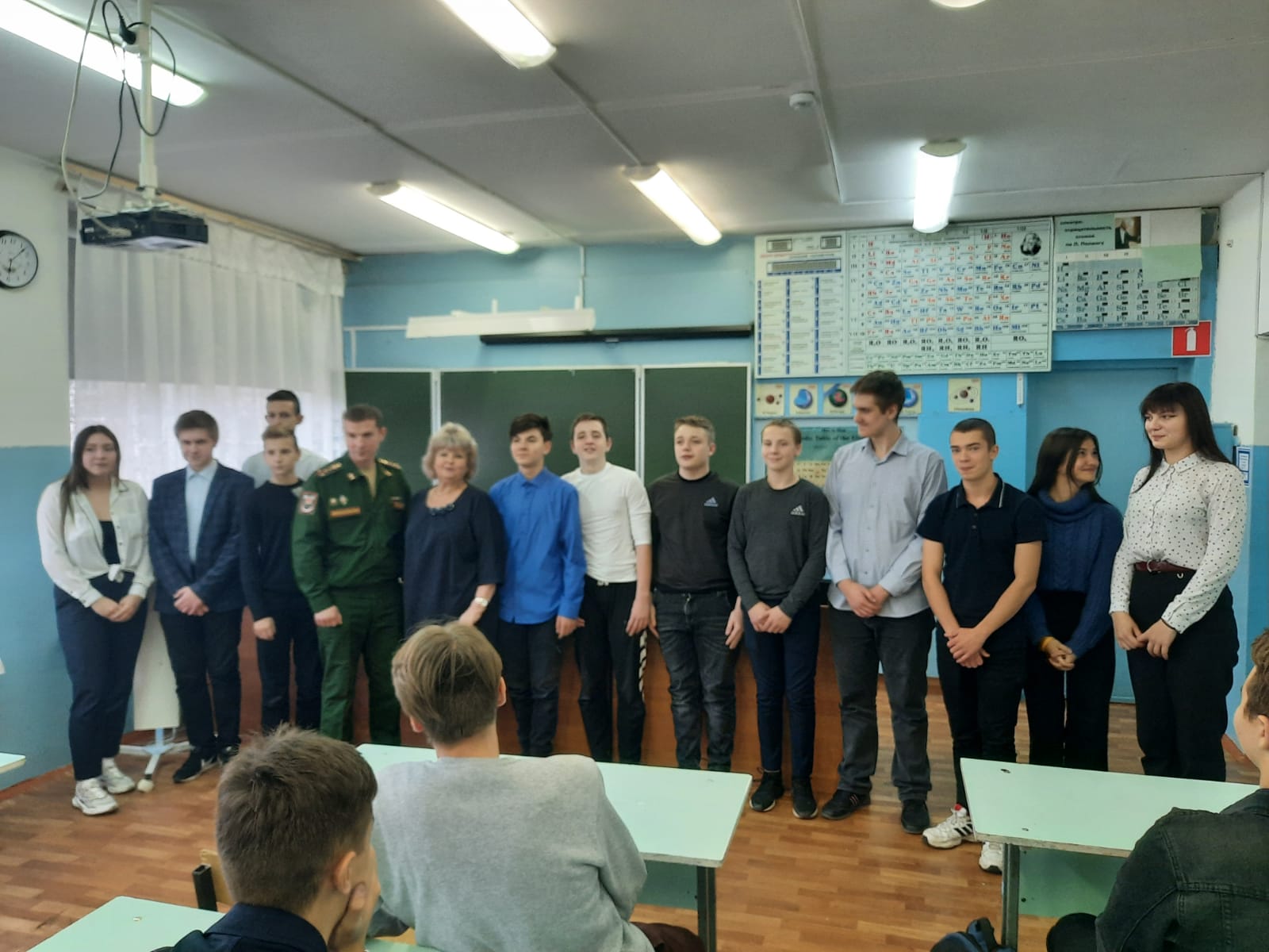 Сегодня состоялась встреча с представителями очень почетной профессии-офицер российской армии. Перед юношами и девушками 8-11 классов выступил заместитель командира по военно-политической работе Гордиенок Евгений Викторович, вопросов было много. Кому-то уже скоро пополнять ряды Вооруженных сил Родины, а некоторые хотят стать офицерами. А как служится современным солдатам срочной службы? На эти вопросы ответил рядовой Викторов Ян.