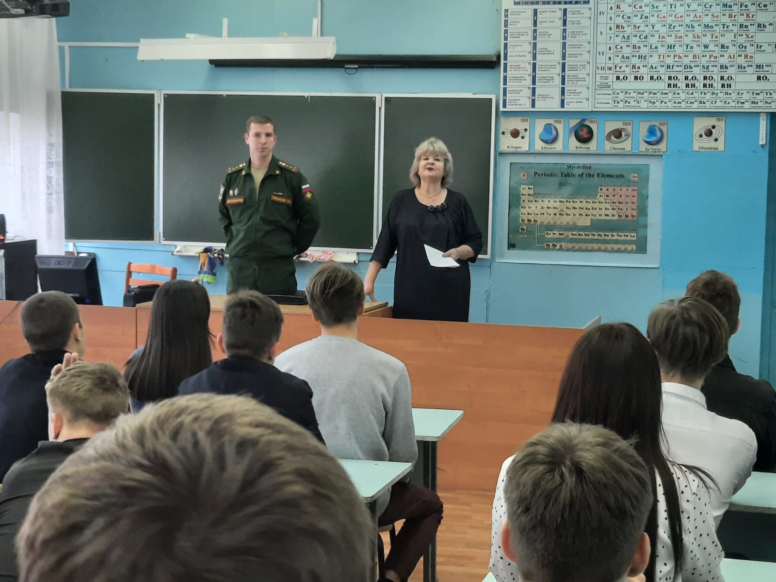 Сегодня состоялась встреча с представителями очень почетной профессии-офицер российской армии. Перед юношами и девушками 8-11 классов выступил заместитель командира по военно-политической работе Гордиенок Евгений Викторович, вопросов было много. Кому-то уже скоро пополнять ряды Вооруженных сил Родины, а некоторые хотят стать офицерами. А как служится современным солдатам срочной службы? На эти вопросы ответил рядовой Викторов Ян.