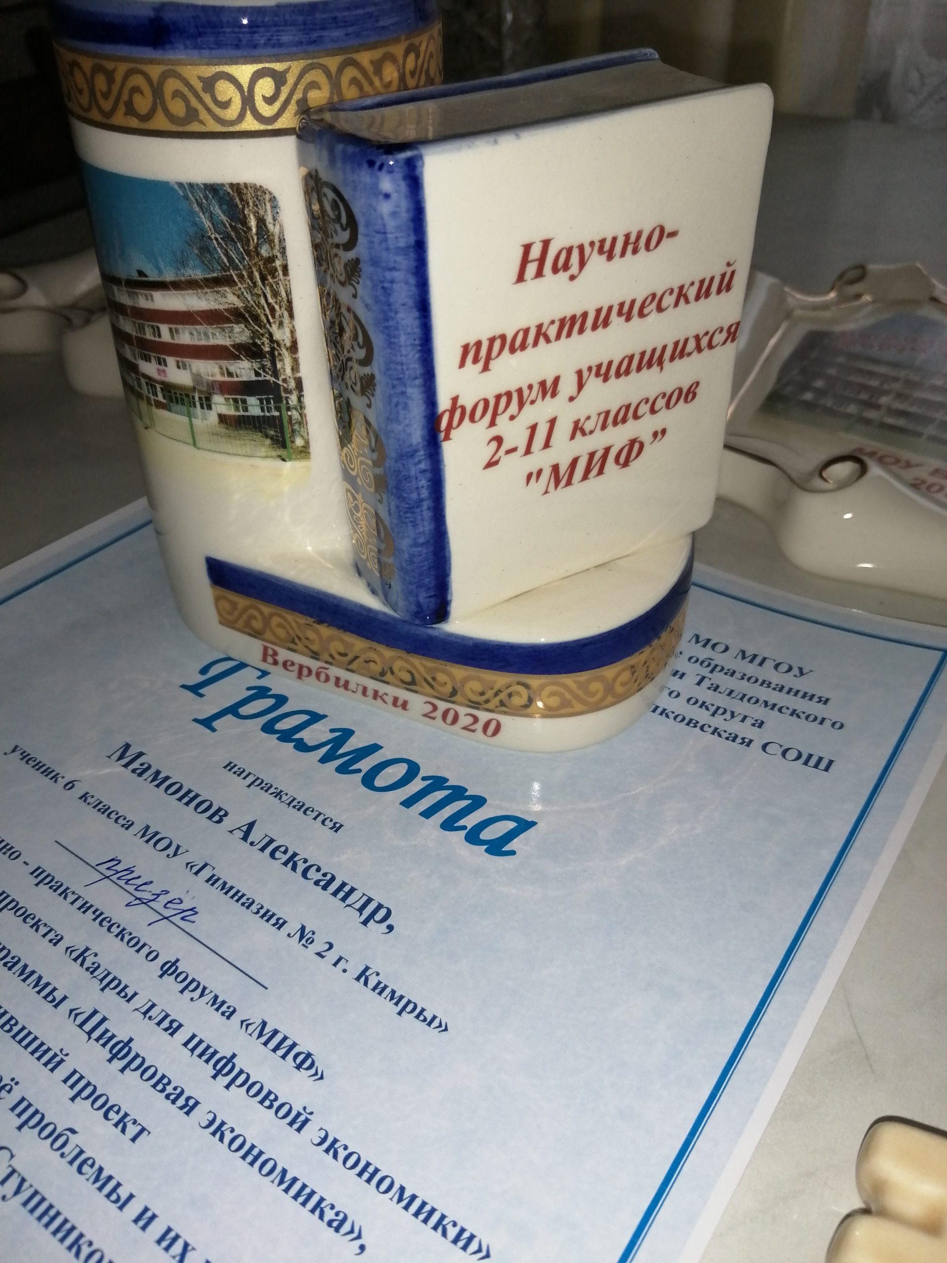 Поздравляем Мамонова Александра, гимназиста 6 «А» класса, с призовым местом на межрегиональном научно-практическом форуме «МИФ», состоявшемся 11 декабря 2020 года на базе МОУ Вербилковская СОШ, в рамках федерального проекта «Кадры для цифровой экономики» национальной программы «Цифровая экономика».
