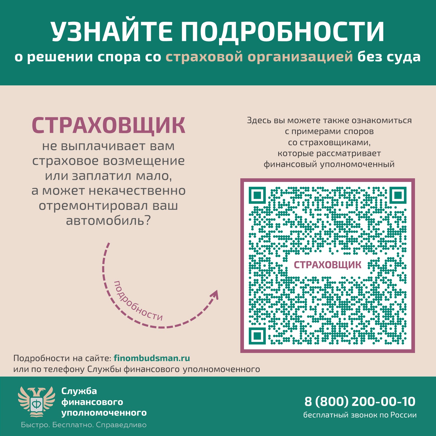Ознакомиться с подробной информацией о разрешении споров со страховыми организациями можно на сайте finombudsman.ru в разделе «База знаний» по ссылке.