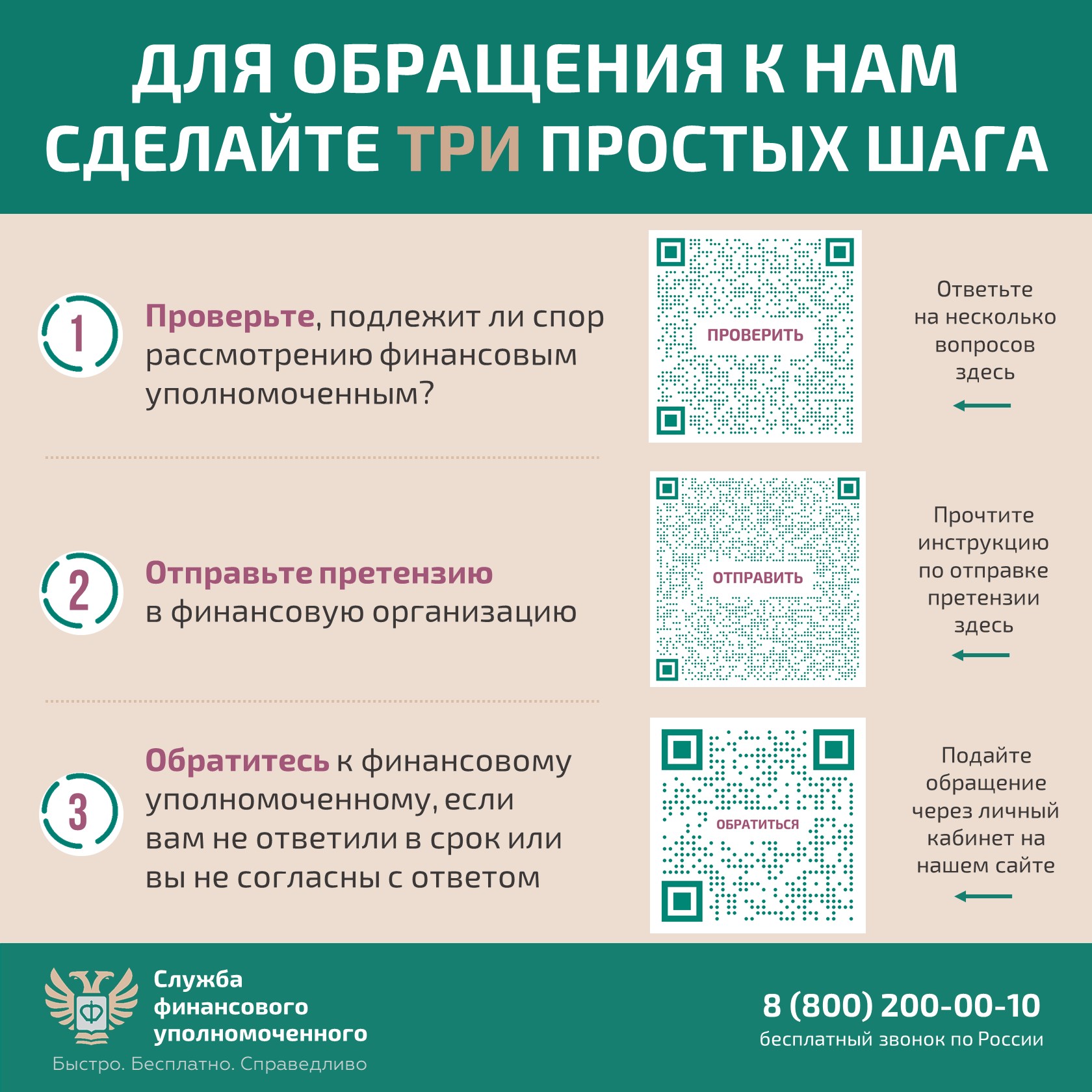 Направить обращение финансовому уполномоченному можно через личный кабинет на сайте finombudsman.ru или на портале Госуслуг.