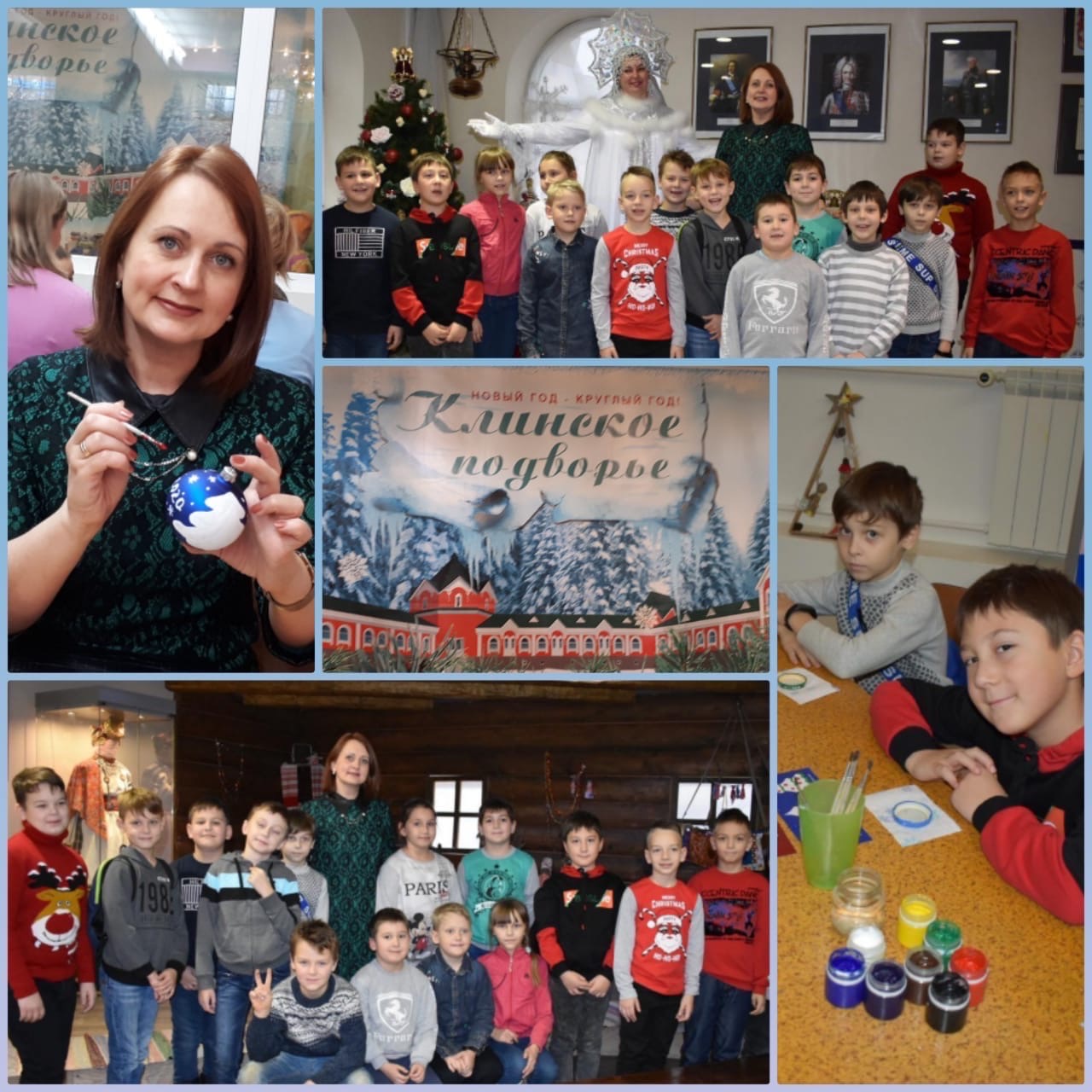 19 ноября 3″Б» класс вместе с родителями и классным руководителем Винокуровой М. В. посетили Клинское подворье. Ребята узнали о зарождении стекольного промысла на Клинской земле, попали в мир загадочной ёлочной игрушки, а также сами выступили в роли художников и создали свою эксклюзивную игрушку. Интересно было наблюдать за непростой работой мастеров-стеклодувов и художников. В завершении экскурсии в парадном зале ребят ждала красавица Ёлка и Дед Мороз.