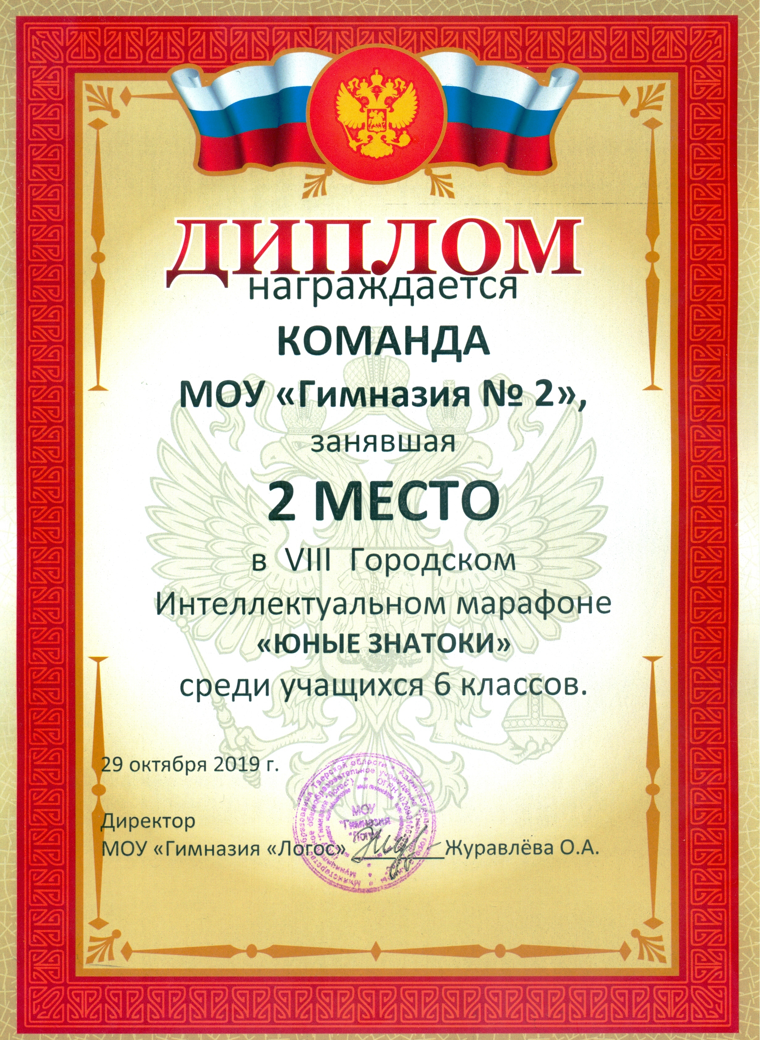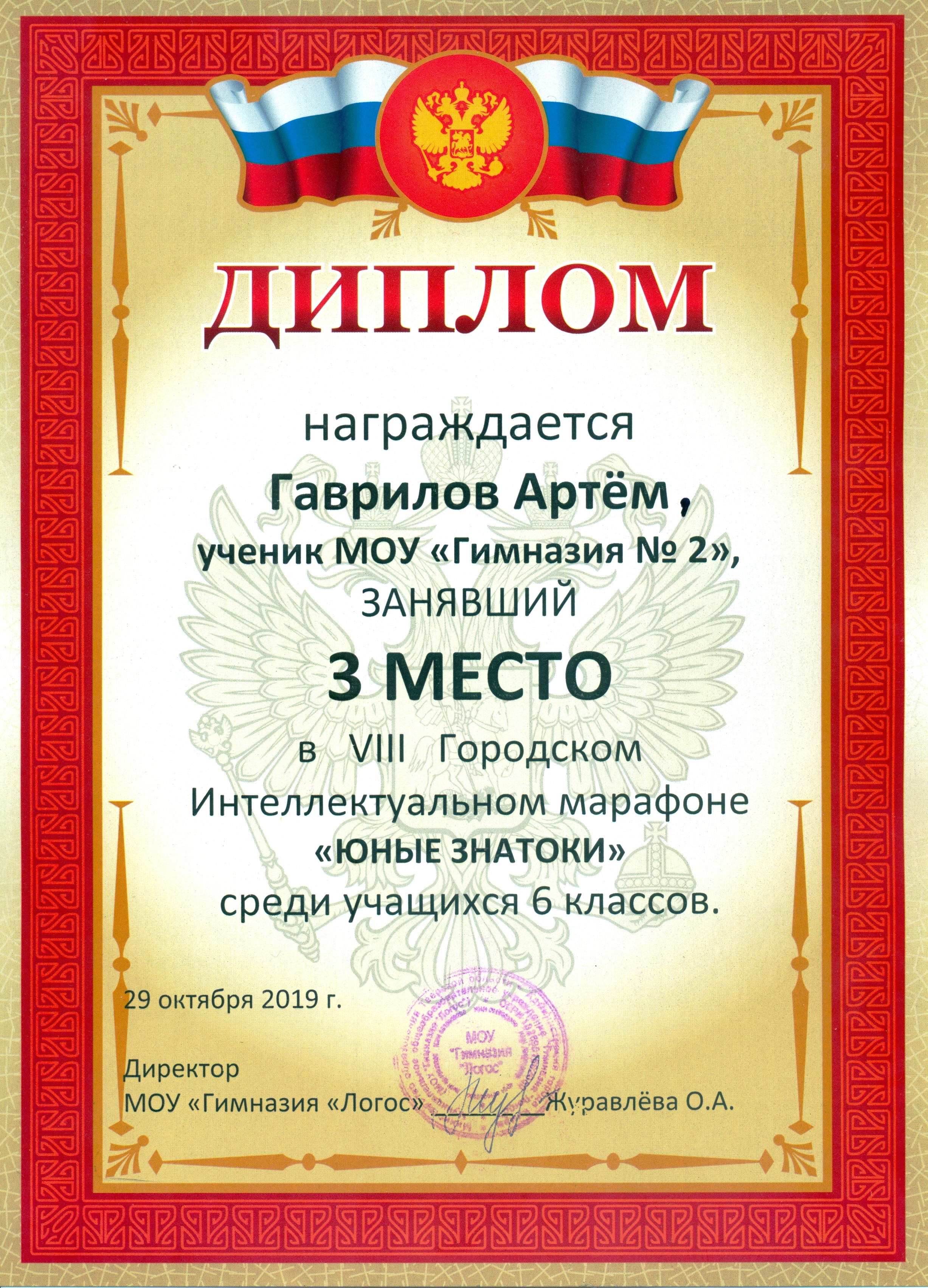 29 октября в МОУ «Гимназия Логос» прошел традиционный «Интеллектуальный марафон», который собрал юных знатоков со всего города. Команда шестиклассников нашей гимназии также приняла в нем участие. Ребята соревновались по самым разным предметам, среди которых были русский язык, математика, биология, английский язык. В трудной борьбе наша команда заняла 2 место, а в личном зачете 3 место занял Гаврилов Артем. Поздравляем наших знатоков!