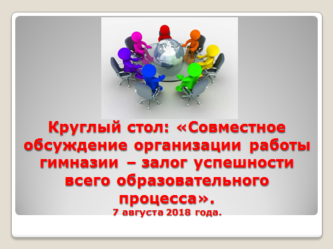 7 августа в гимназии состоялся Круглый стол с родителями, обучающимися и педагогами: «Совместное обсуждение организации работы гимназии – залог успешности всего образовательного процесса».