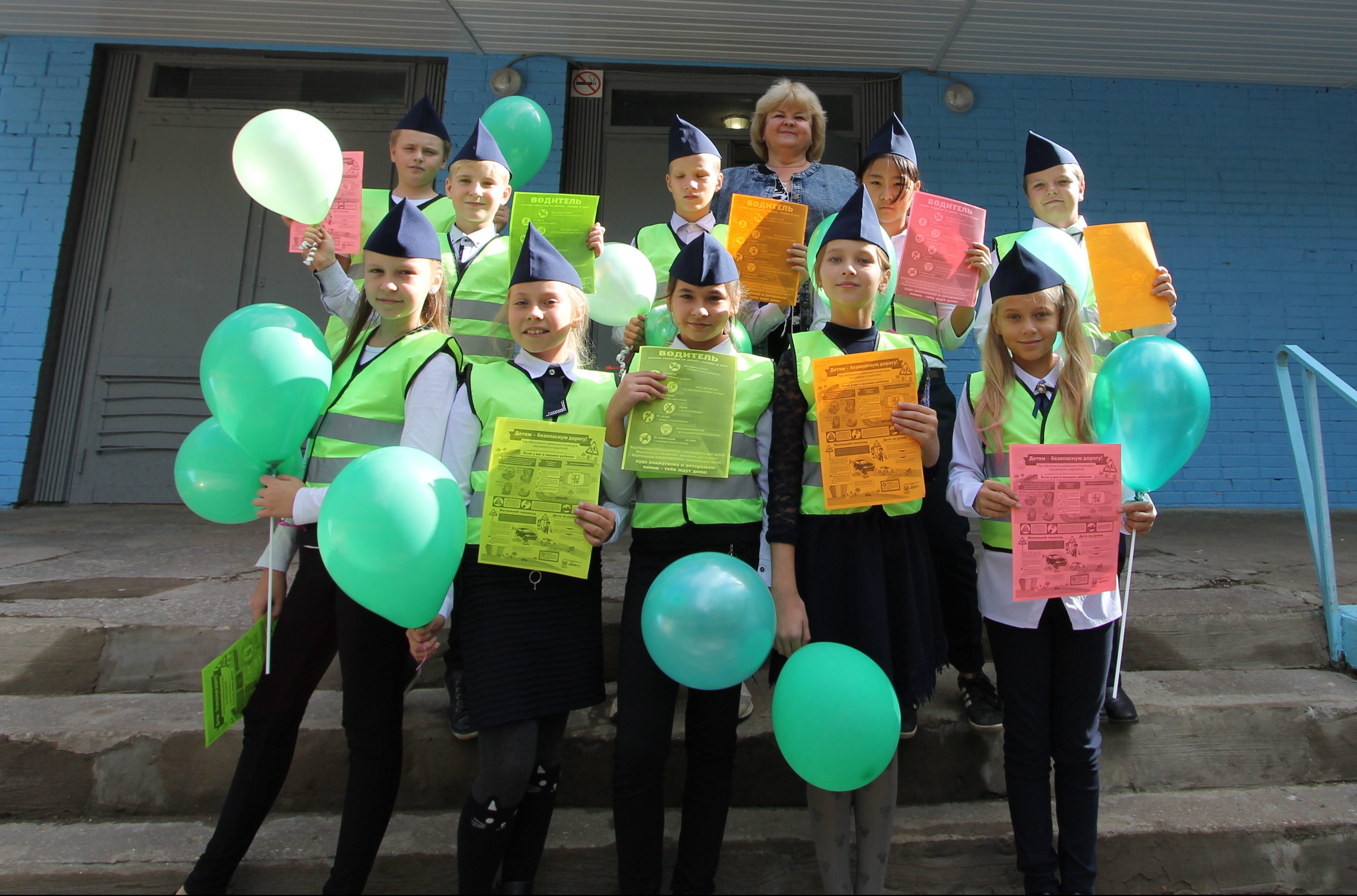 Ученики из отряда ЮИД (5 «А» класс) со своим классным руководителем Носковой И. Ю. и заместителем директора по воспитательной работе Ганичевой Ю. А. вышли на улицу для распространения памяток и листовок, а добросовестным пешеходам вручили воздушные шары.