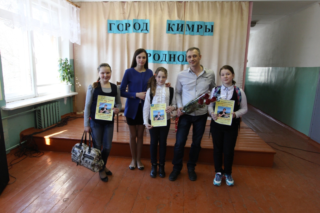 На встрече гимназисты не только задавали разные вопросы, интересовались планами музыканта на ближайшее время, но и поделились своими литературными достижениями: Ирина Петрухно (8 «Г» класс) и Дроздова Кристина (5 «Б» класс) прочитали свои замечательные стихотворения о своём любимом городе.