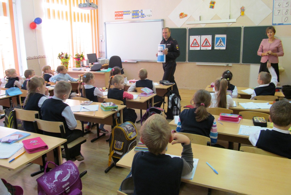 В рамках месячника профилактики дорожно-транспортного травматизма «Внимание, дети!» в гимназии для учащихся 1-х классов проводились тематические уроки — беседы по ПДД, которые вёл инспектор по пропаганде ОГИБДД МО МВД России «Кимрский» Жегалин Иван Сергеевич.