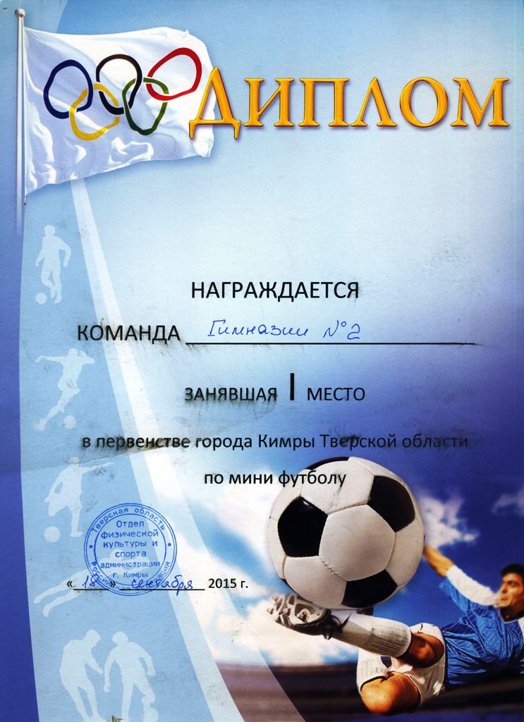 Поздравляем команду нашей гимназии в составе: Назарова Даниила, Расторгуева Александра, Виноградова Дмитрия, Андреева Дмитрия, Усанова Алексея, Титова Даниила, Панюшева Владислава, Стогова Тимофея, Селезнёва Данила, Нашикяна Ваагна (капитана команды), занявшую I место в первенстве города Кимры Тверской области по мини-футболу.