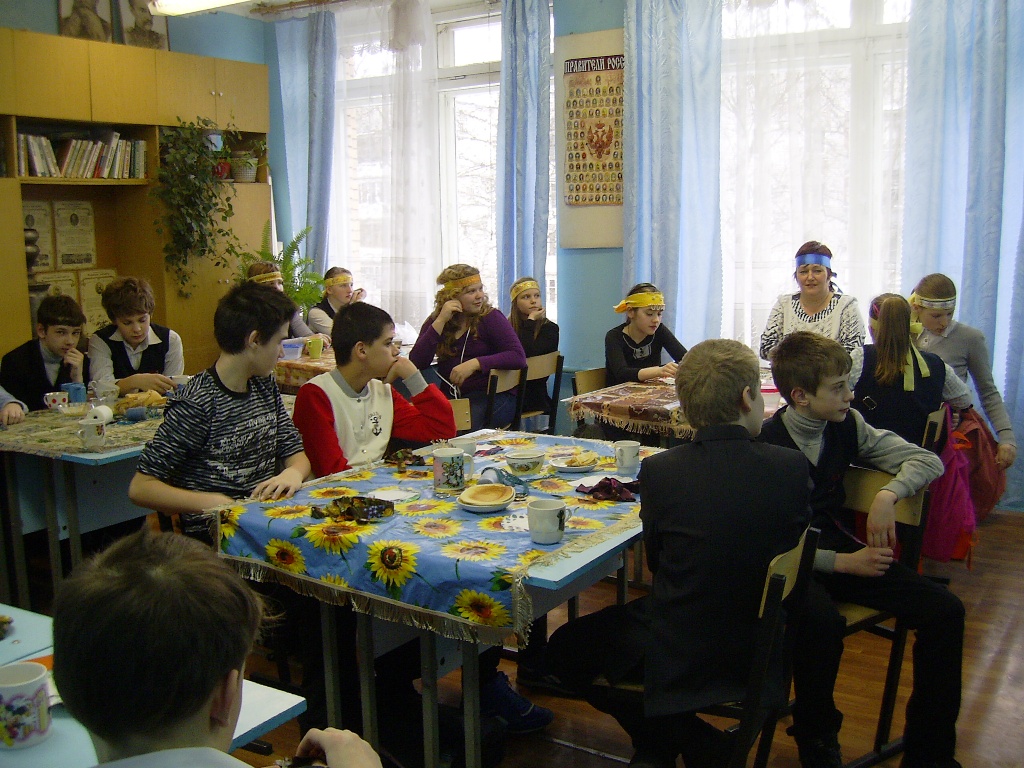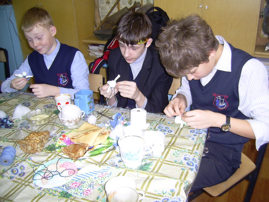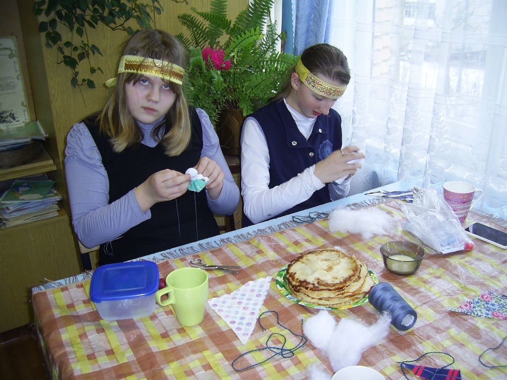 Учащиеся 8 «Б» класса Бородулина П. и Копылова М. рассказали шестиклассникам о традициях этого праздника, провели мастер-класс по изготовлению кукол-блинниц.