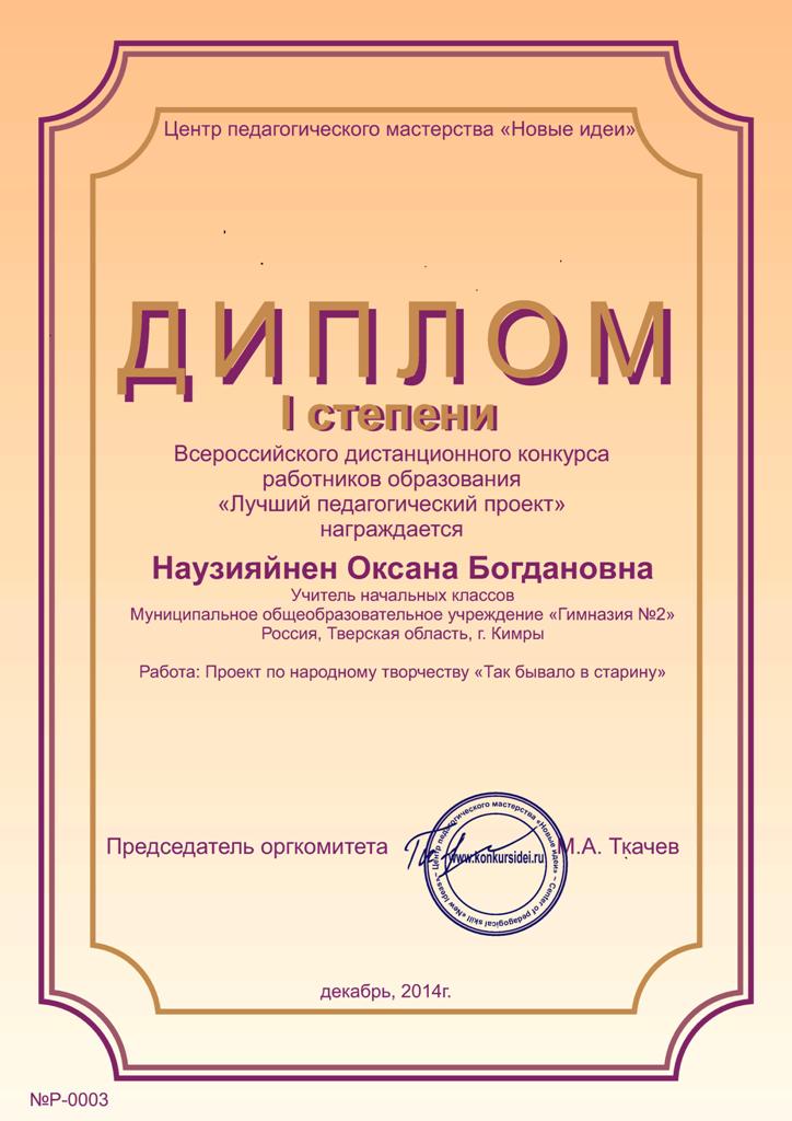 Подведены итоги Всероссийского дистанционного конкурса работников образования «Лучший педагогический проект», организованного Центром педагогического мастерства «Новые идеи».