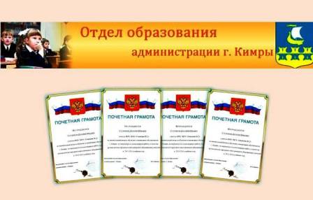 За значительный вклад в обучение и воспитание обучающихся г. Кимры, за творческую и плодотворную работу в качестве руководителя городского методического объединения учителей Почётной грамотой Отдела образования были награждены учителя нашей гимназии: Васильева Вера Васильевна (руководитель ГМО учителей 2-х классов), Наузияйнен Оксана Богдановна (руководитель ГМО учителей 3-х классов), Суслова Светлана Владимировна (руководитель ГМО учителей истории, обществознания, права), Ступников Дмитрий Юрьевич (руководитель ГМО учителей иностранного языка).