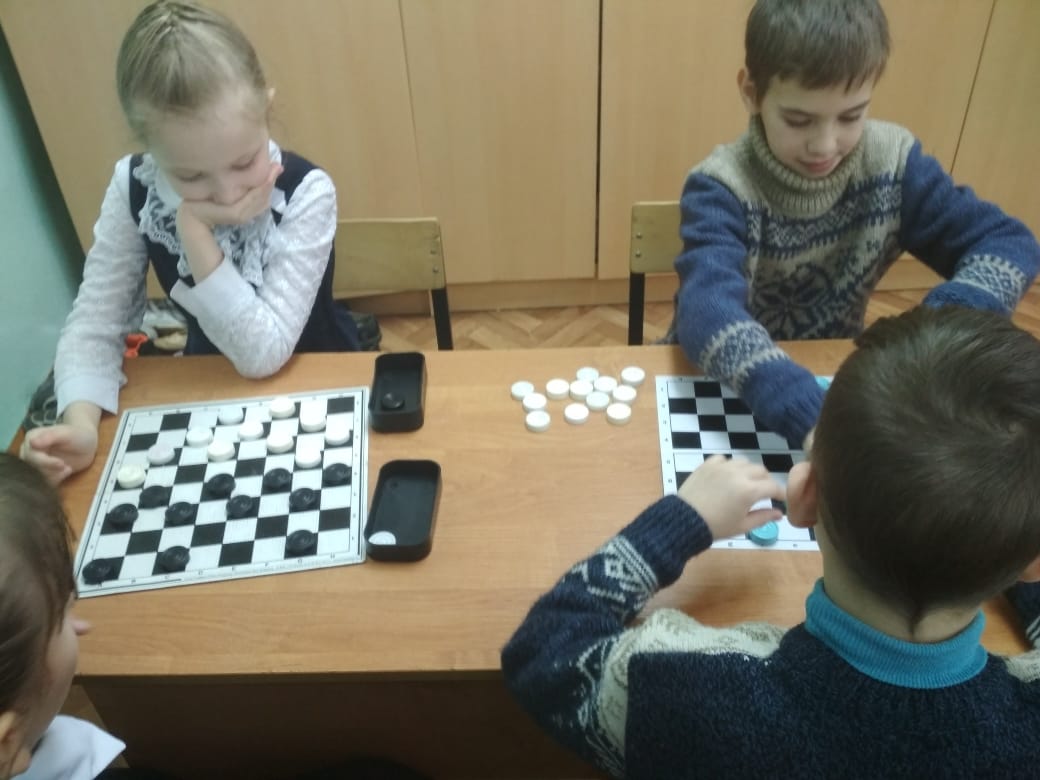 Победителями шашечного турнира стали следующие обучающиеся: Нарышкин А. и Башилова С. (4 «А» кл.), Романенко А. (2 «Б» кл.) и Семёнова М. (2 «А» кл.).